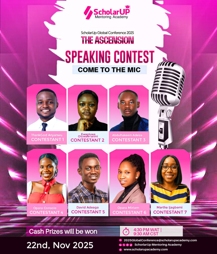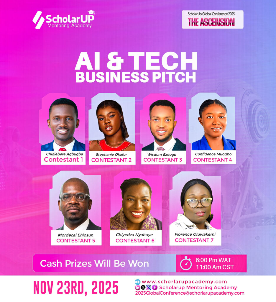 This November, ScholarUP Mentoring Academy will host its first-ever AI & Tech Business Pitch and Public Speaking Contests at The Ascension: ScholarUP Global Conference 2025.